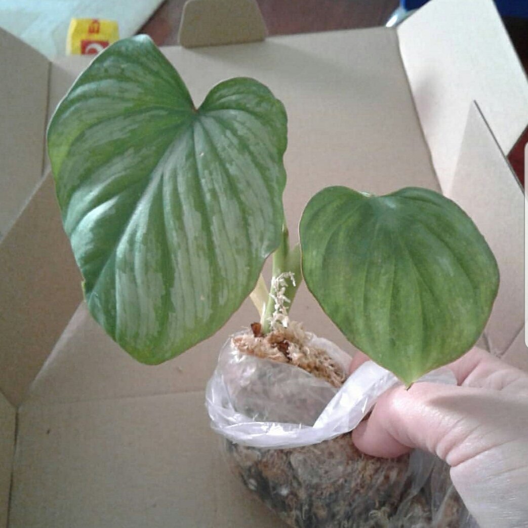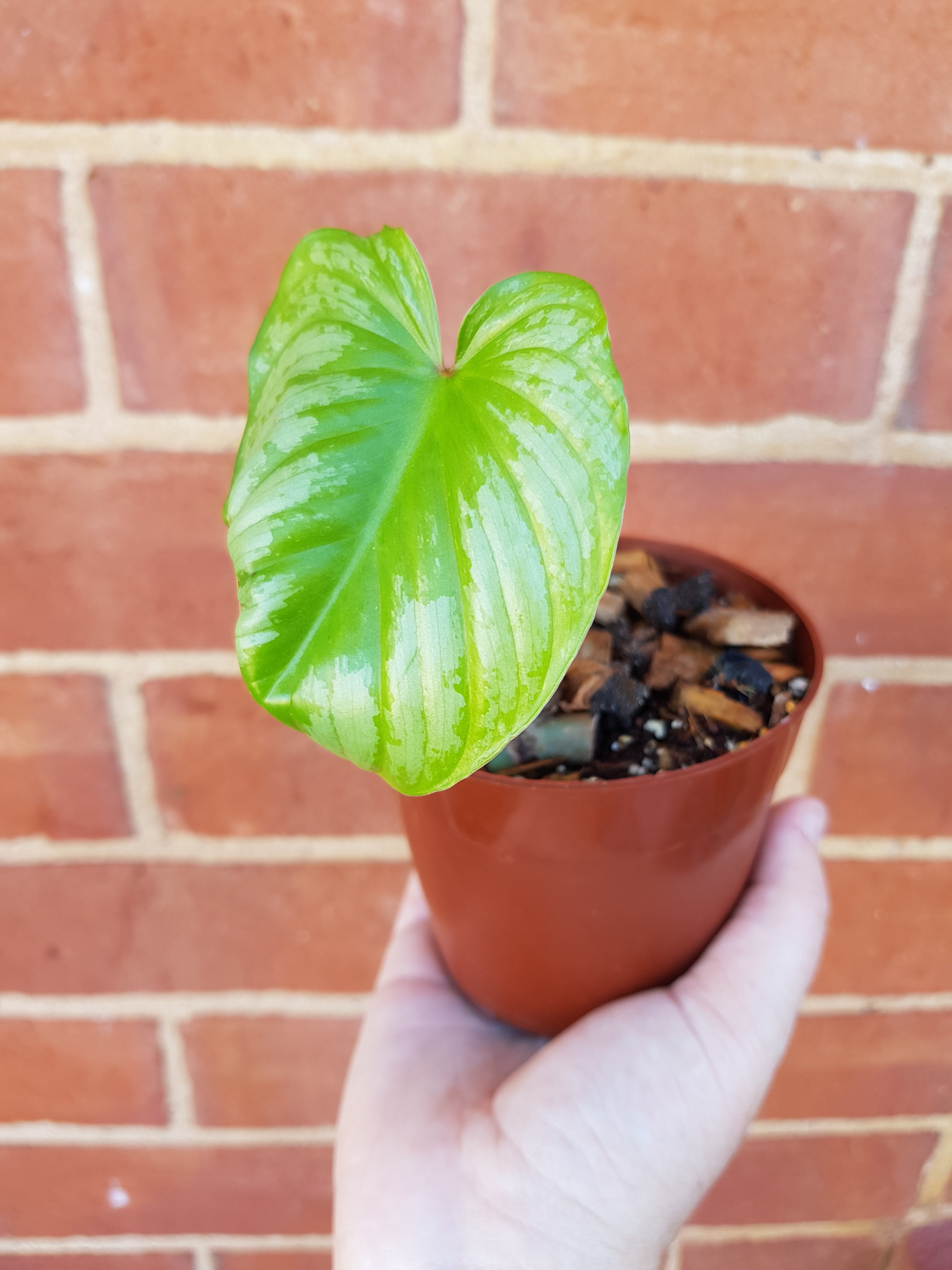 Recently I bought myself one of my first big leafed Philodendrons. A Philodendron Silver Cloud, a cultivar of the P. Mamei. The leaves can grow up to two foot wide. This one is just a baby so it will take a while to get leaves even half that size.