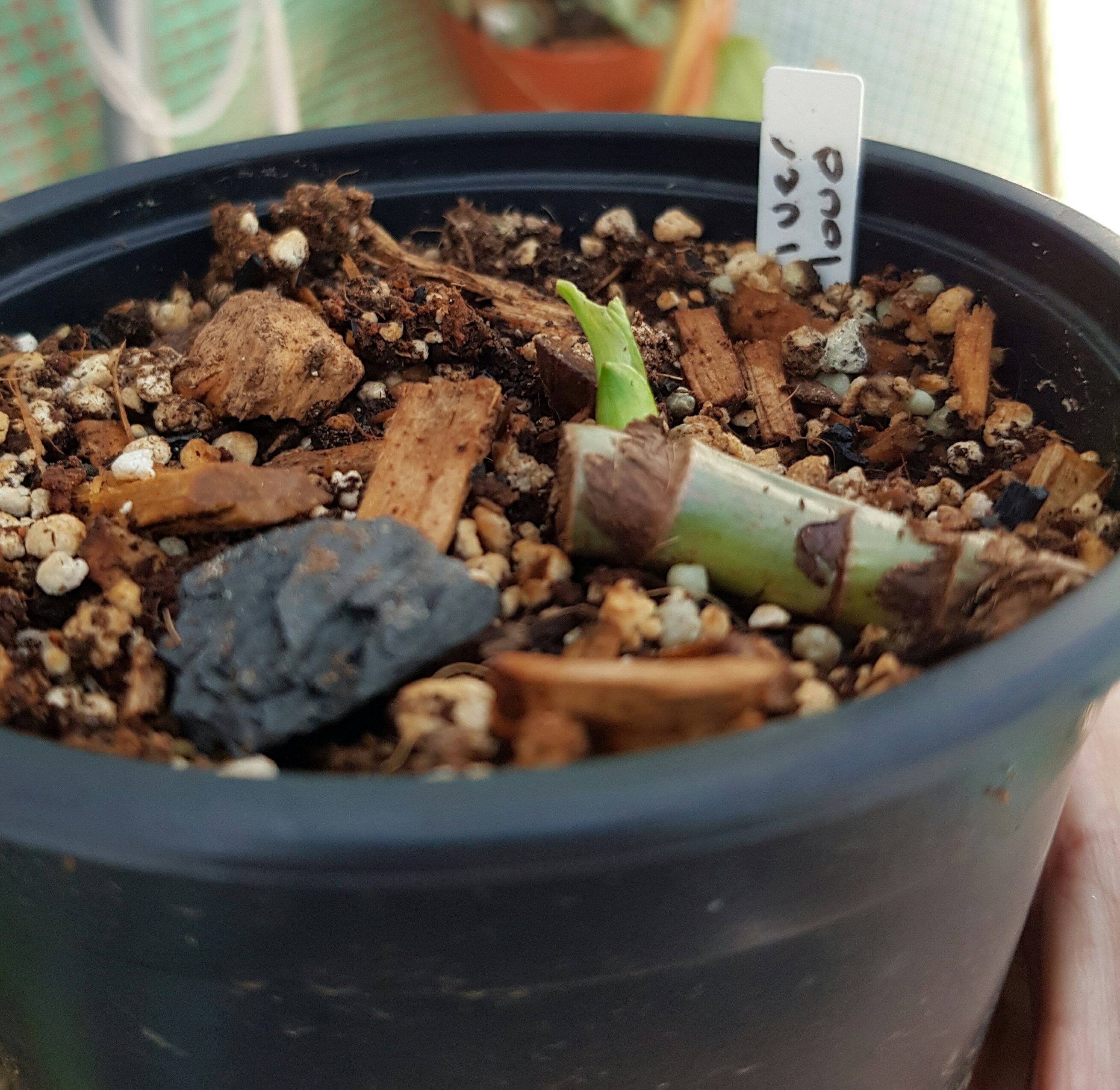 The main plant has sadly been damaged by a recent heatwave. 40 – 44deg over 4 days was just a bit too much for it’s young leaves and the last day fried the leaves almost entirely. I learnt a lot through this and I know I was not the only one who had burnt leaves that day. Lucky the new on coming leaf was not burnt and although it’s small, it will set the plant up with the goods to produce a better leaf next time. This is the plant now.
